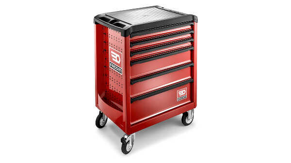 - La servante d’atelier et la caisse à outils sont équipées de coulisses à billes.