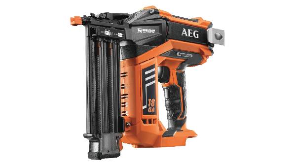 - Le cloueur électrique sur batterie 18V B18N18-0 de la marque AEG permet une projection optimale des clous à partir de l’appareil vers la cible.